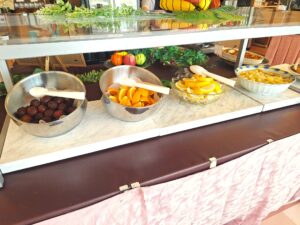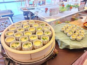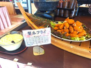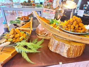 バイキングレーンには、カニ酢でさっぱり食べる「茹でズワイガニの足」や「蟹茶碗蒸し」「カニ爪フライ」