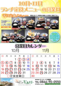 【ランチバイキング】残すところあと2日! 2025.09.26 明日9月27日(土)・9月28日(日)は 【ランチバイキング】営業日です✨ 10月10日(金)からは、カニバイキング🦀営業【予約制】のため、 年内はラスト営業となります”(-“”-)” 残すところ後2日!! 予約なしでもご来館いただけますので、皆さまのお越しお待ちしております♪ 10月・11月のランチ定食メニューの営業となります☆彡 ↓お越しの際にお役立てください↓ Post