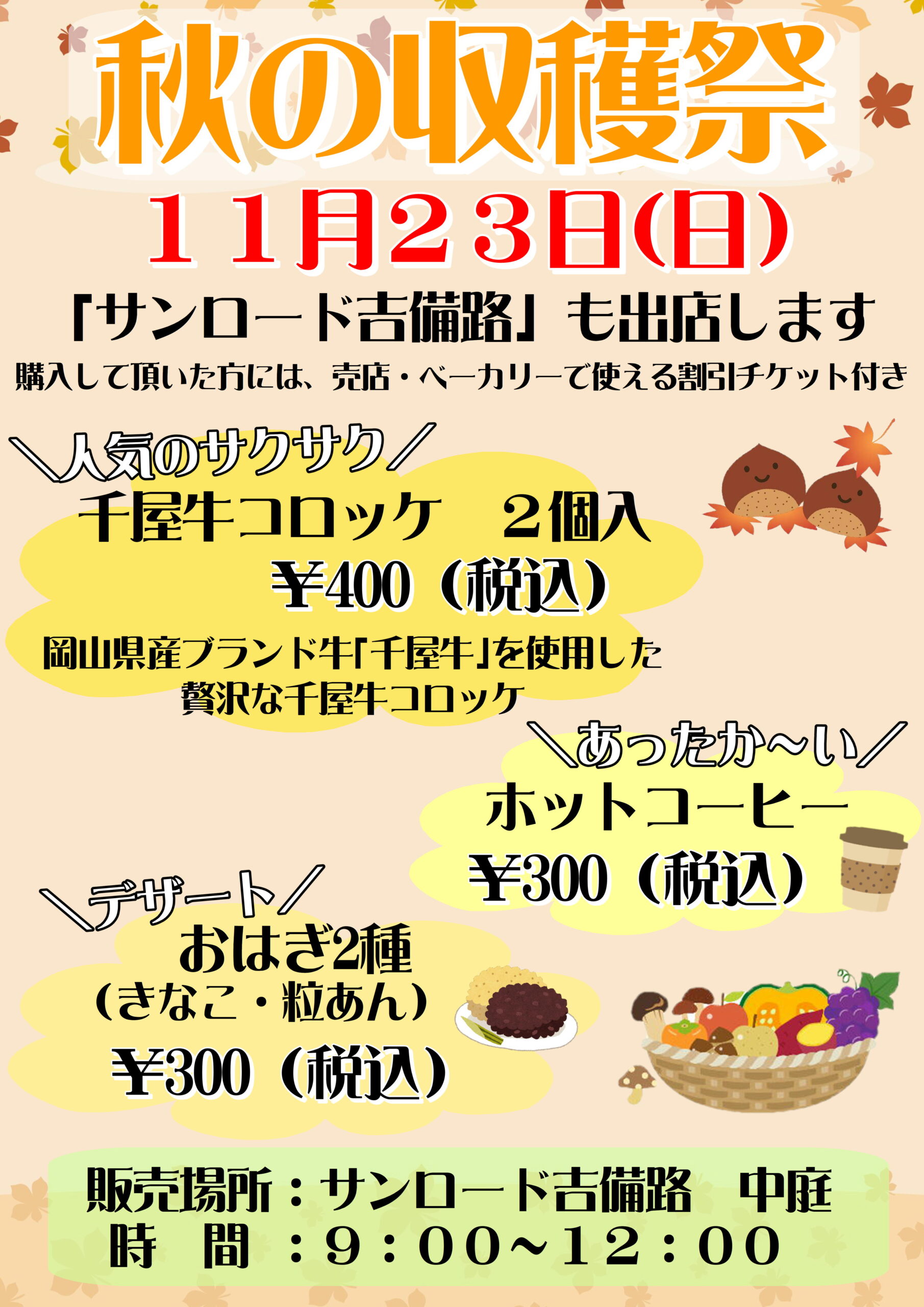 今年も\秋の収穫祭🍂/がサンロード吉備路中庭にて行われます♪♪