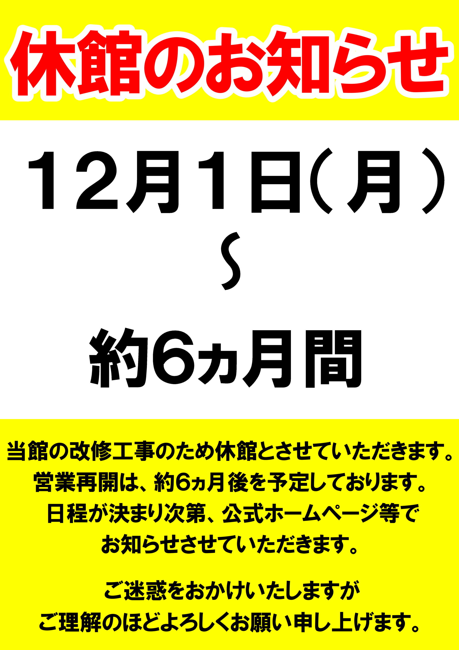 当館の改修工事のため12月1日(月)~約6ヶ月間は休館とさせていただきます。